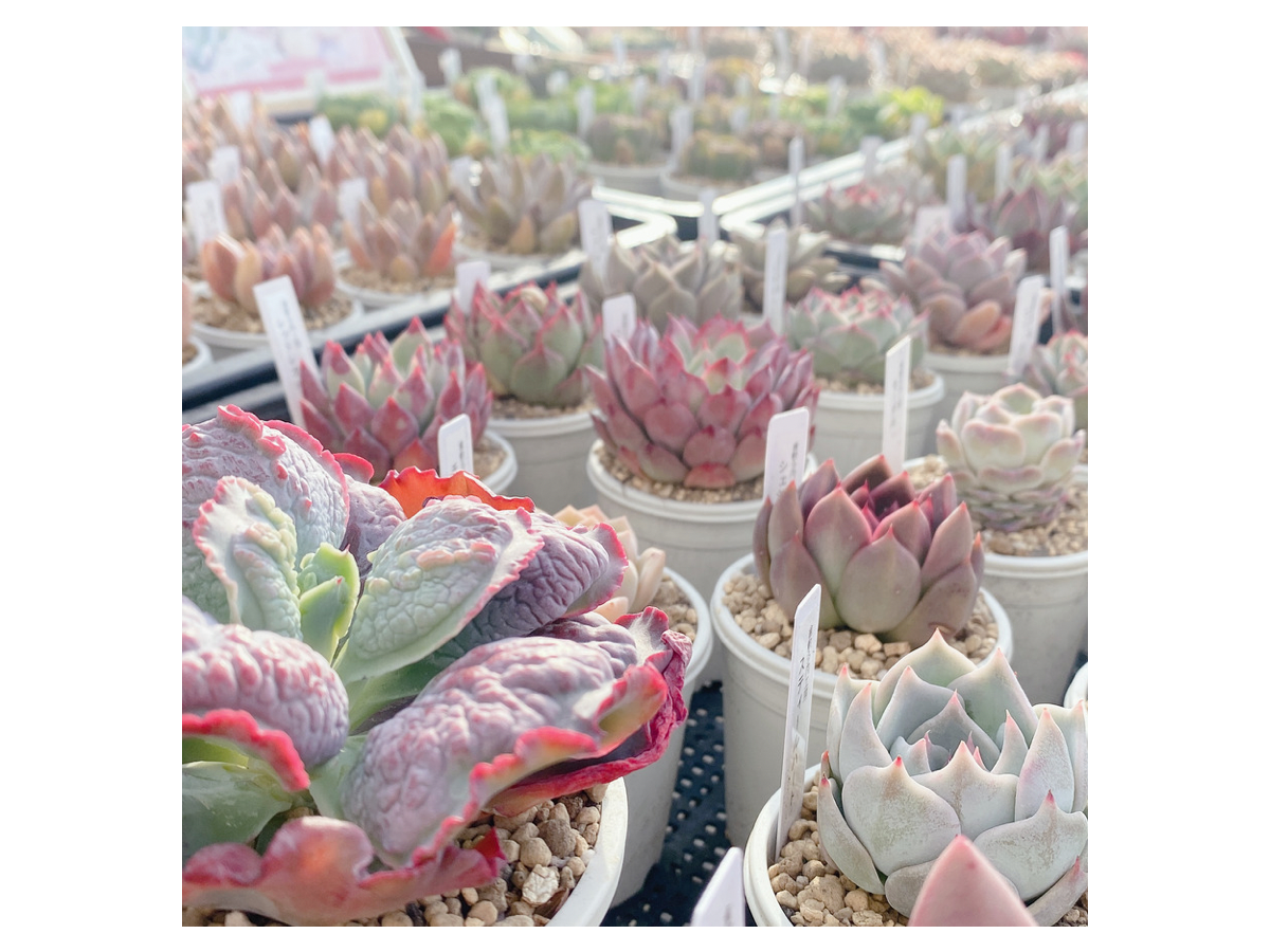 国内外から苗を仕入れて販売をしています。まずは品種を多く取り揃え、その苗から多肉の葉挿しなどで生産量を増やします。実生苗にも準備が出来次第挑戦していぎす。