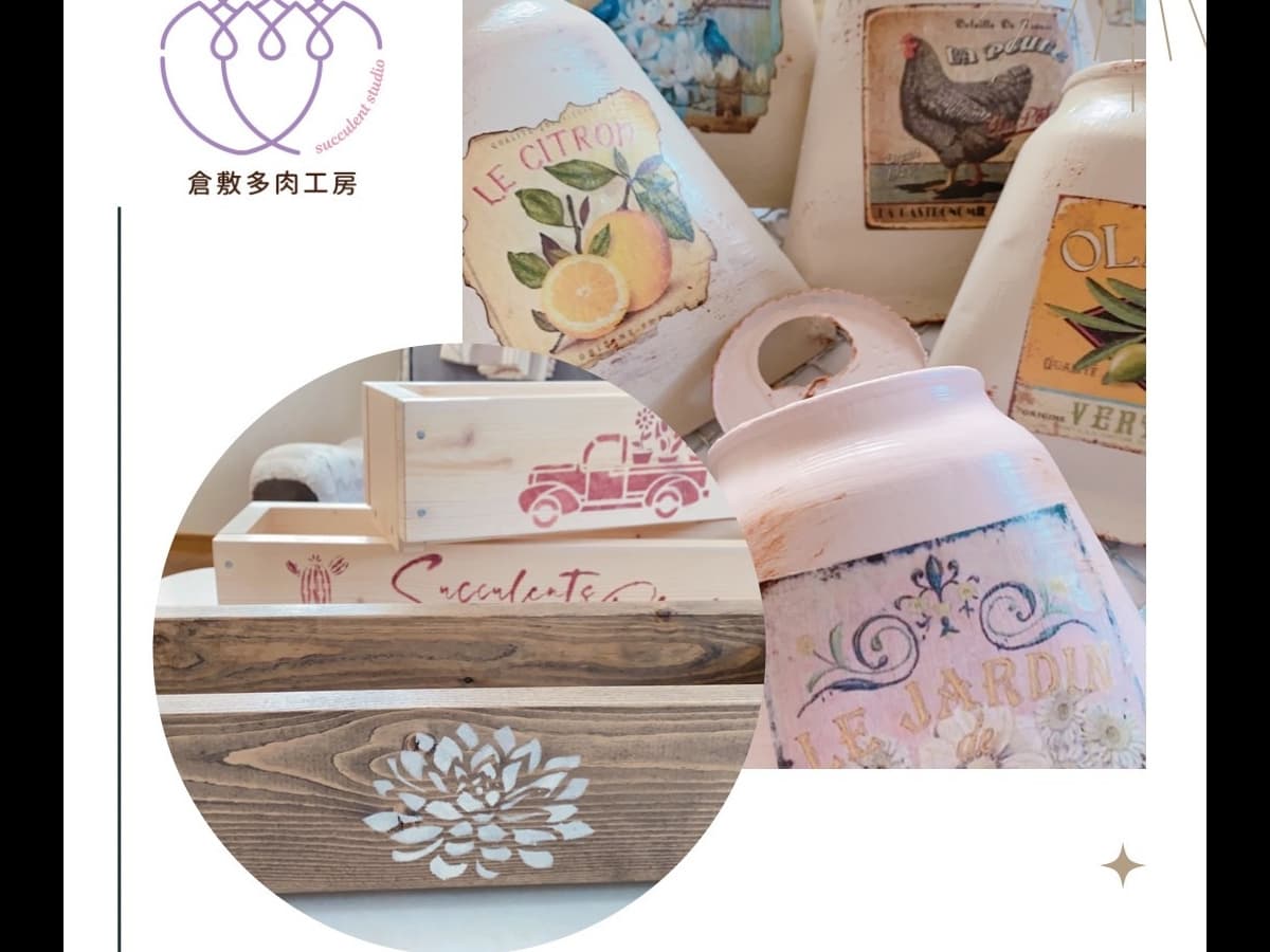リメ缶・木製トレー・モルタル造形など多肉と遊ぶ時に必要な物を制作したり販売もする予定にしております。